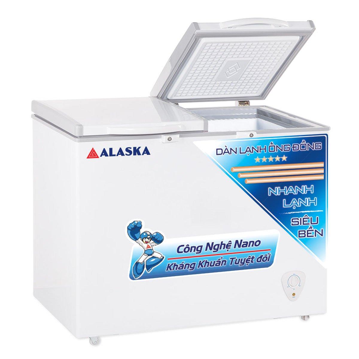 Tủ trữ đông, mát Alaska BCD - 5568C có dung tích lên đến 550l, cho người dùng thoải mái bảo quản các loại thức ăn tươi sống. Tủ được thiết kế gồm hai ngăn rộng rãi, nắp dỡ bên trên cho bạn dễ dàng thao tác khi cần. Giỏ treo được trang bị kèm theo, tiện lợi cho việc phân loại thức ăn. Lồng tủ được phủ lớp sơn tĩnh điện luôn giữ an toàn cho người dùng. Sản phẩm còn trang bị lỗ thoát nước và bánh xe chịu lực, cho việc bảo quản và di chuyển thiết bị trở nên dễ dàng hơn. Gam màu trắng đặc trưng luôn mang đến sự sang trọng cho ngôi nhà của bạn.